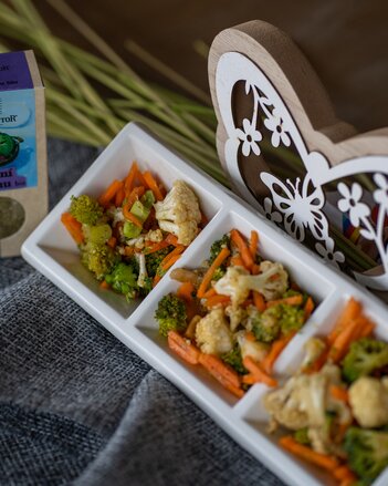 1. Mrkev nakrájíme na nudličky, brokolici a květák rozebereme na růžičky.