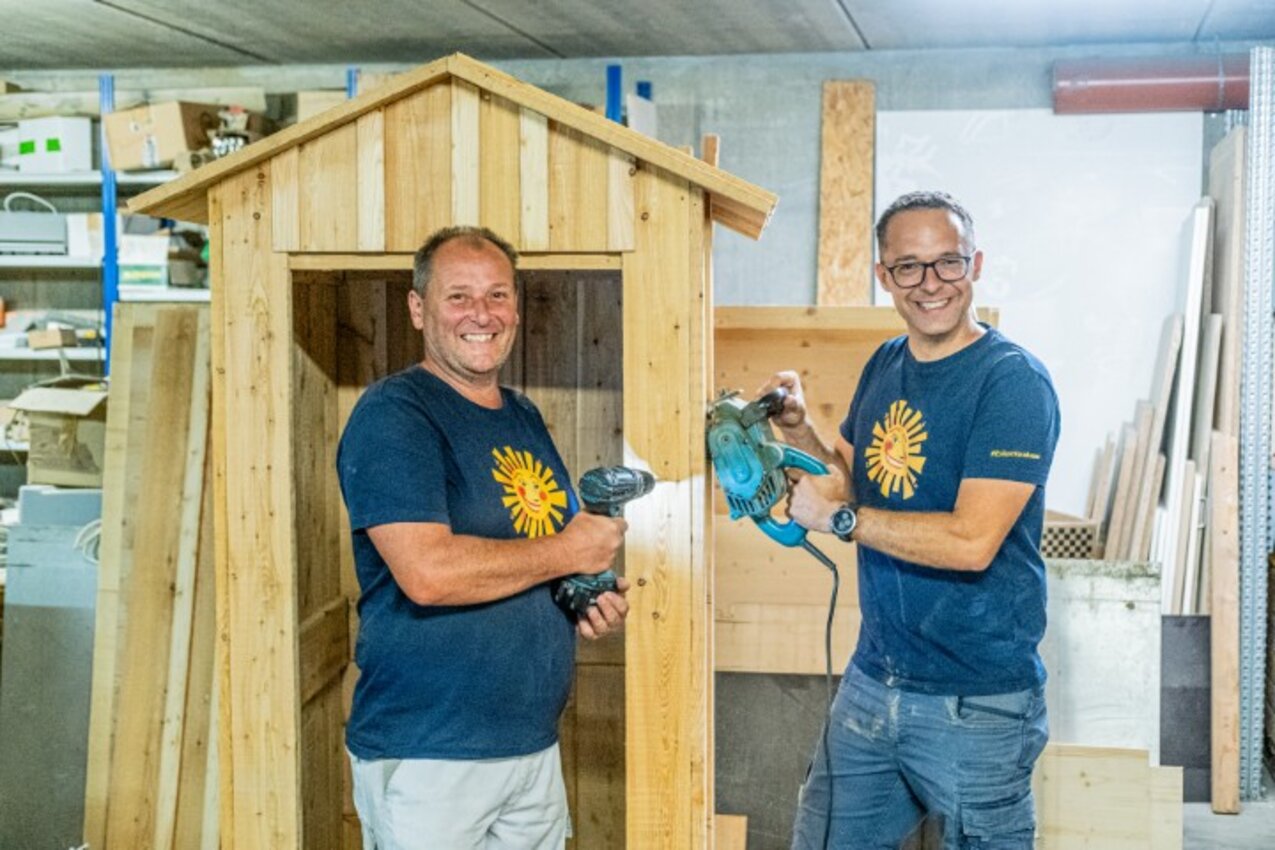 Ganz besondere Freude macht den Herren die sonnige Gestaltung unseres SONNENTOR Areals. Ob Rad-Unterstand, Bengelchen-Weg, Bienengarten oder Spielplatz – überall sind ihre kreativen Ideen und ihre geschickten Hände gefragt. So wird ihre Werkstatt oftmals zu einer Bastel-Schmiede, in der mit ganz viel Liebe unsere individuellen, sonnigen Einzelstücke gefertigt werden.