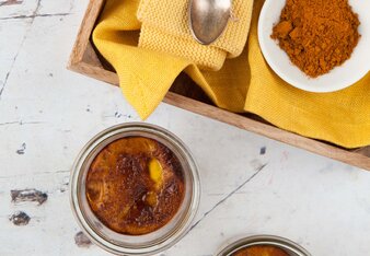 *Kurkuma Paste: 1 gehäufter EL (ca. 8 g) Kurkuma-Latte Mischung mit 30 ml Wasser verrühren, zum Köcheln bringen, bis eine Paste entsteht. Paste im Kühlschrank aufbewahren.