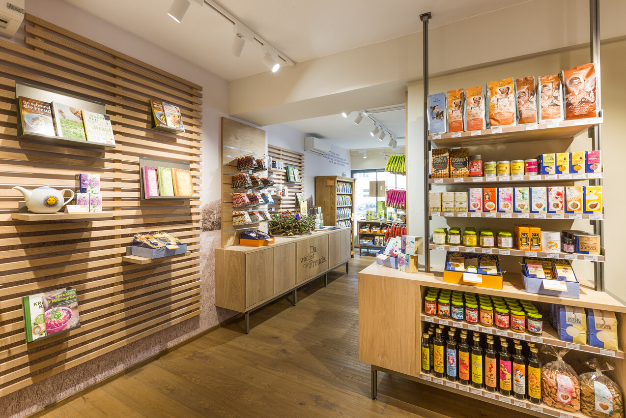 The products are presented in the unique sensual atmopshere, that stands for SONNENTOR: delight meets rustic tradition and modern design. We offer beside tea, coffee and organic drinks also organic sweets in a cozy ambience - who wants can try the sweet delights locally and go on a small Waldviertel-adventure.
